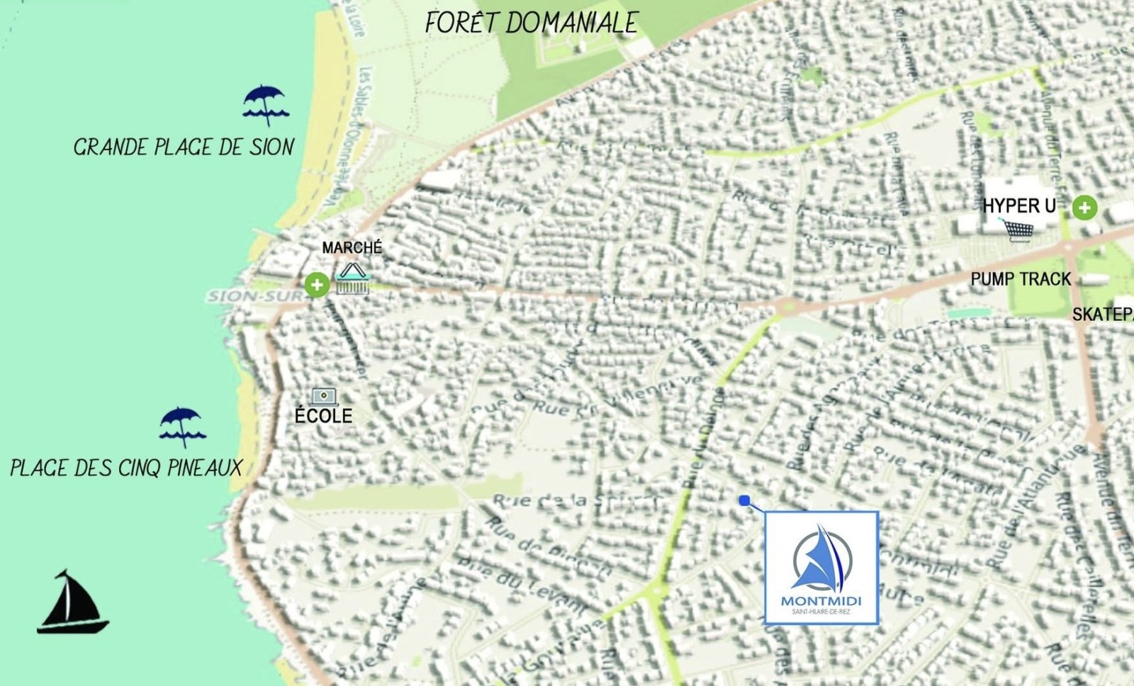 L'abri Côtier vous propose "MONTMIDI", un programme neuf situé à proximité immédiate de Sion, de la plage des Bussoleries ainsi que de l'Hyper U.